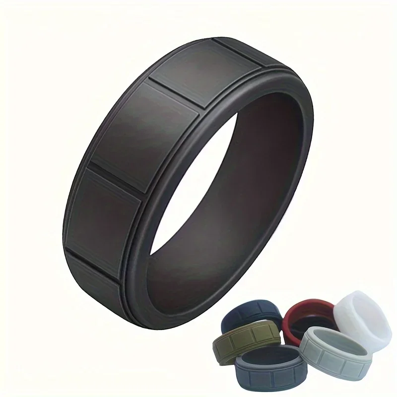 1pc Sporty Business Rectangle Silicone Rings, Gift for Men Boyfriend Father Outdoor Working Sports Daily Wear Wedding Ring  Read more