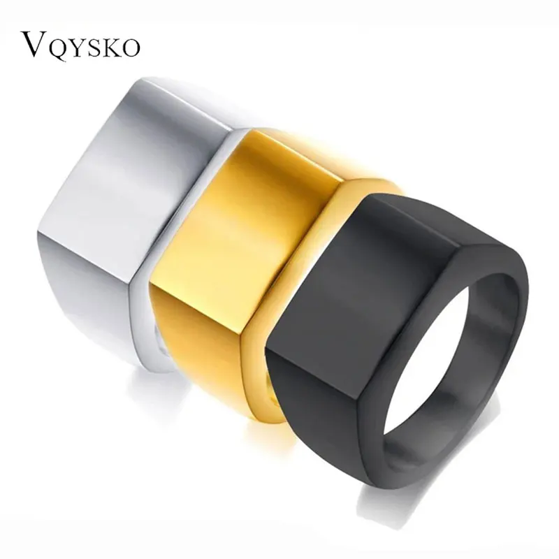 VQYSKO Signet Rings for Men Women Solid Polished Stainless Steel Biker Ring for Men Ideal Gift for Dad & Boyfriend