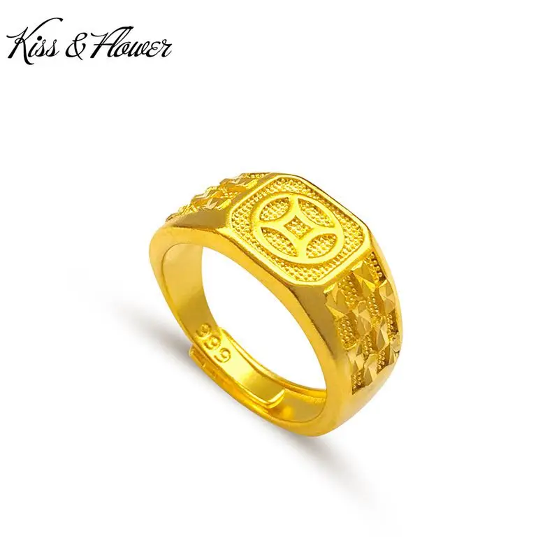 KISS&FLOWER Gold Fortune Coins Resizable Rings For Men Male Birthday Wedding Party Christmas Groom Father Boyfriend Gifts RI27  Read more