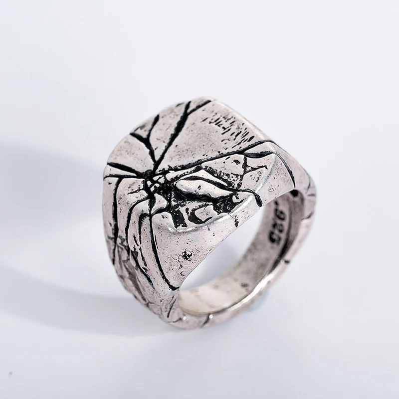 Hip Hop Silver Plated Ring Vintage Big Square Cracked Signet Finger Rings For Men Jewelry Fathers Day Gifts  Read more