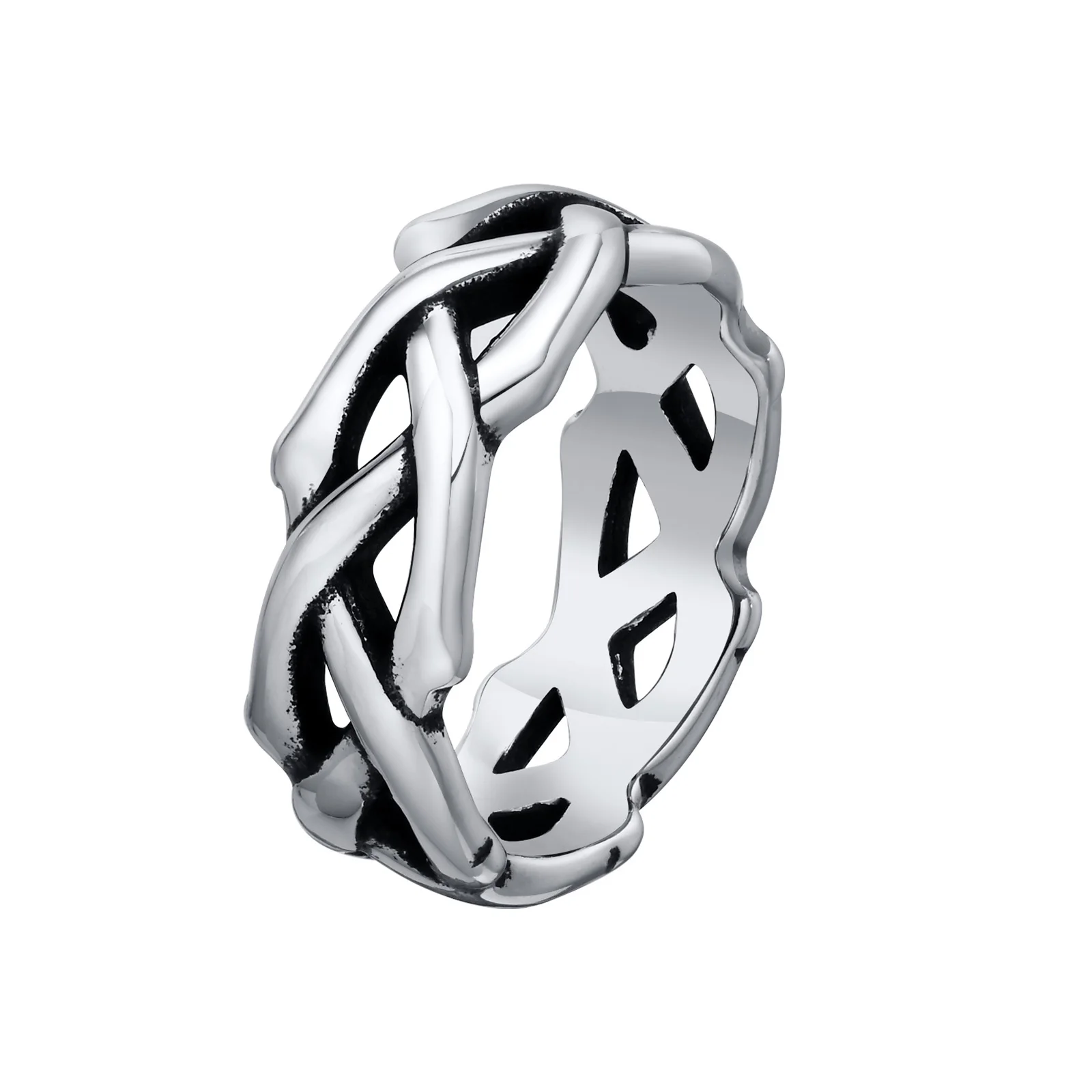 Mprainbow Men's Twisted Chain Ring, Never Fade Silver Color Stainless Steel Hollow Bands Ring Gift to Dad Father BFF Jewelry