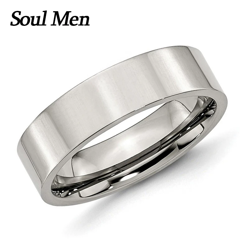 Soul Men 6mm Polish Flat 316L Stainless Steel Rings Male Female Wedding Engagement Band Classic Style Big Size 5 to 15