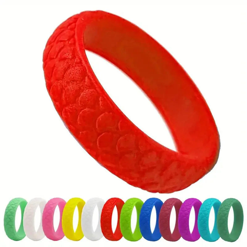 1pc Mesh Pattern Sports Silicone Finger Ring for Women Dragon Scales Wedding Rubber Bands Hypoallergenic Flexible Sporty