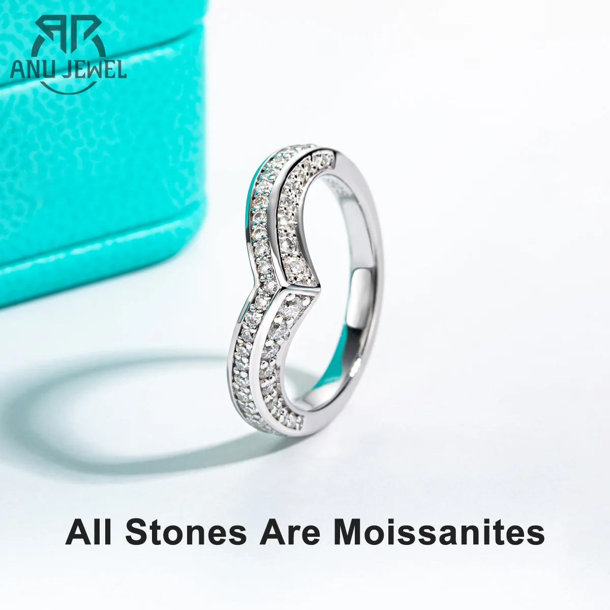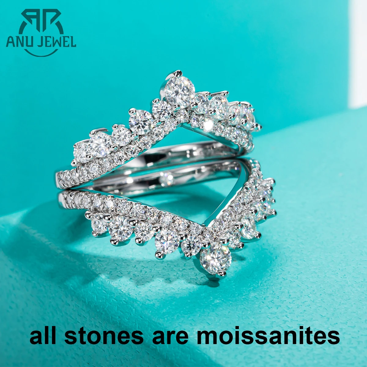 AnuJewel 2mm D Color Moissanite V Shape Wedding Bands 18k Gold Plated 925 Sterling Silver Bridal Ring Set For Girls Jewelry