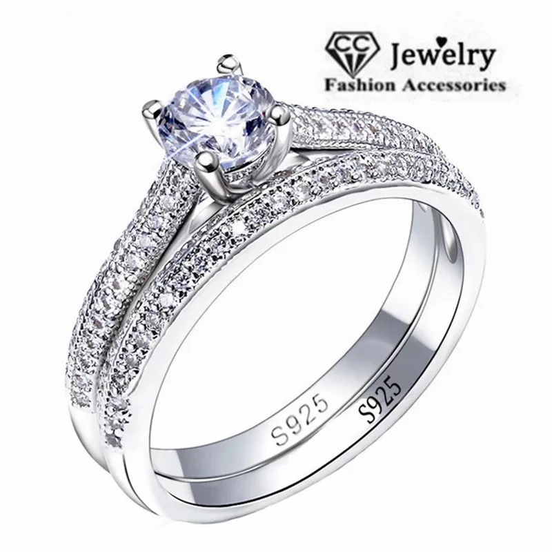CC Rings For Women Silver Color Double Stackable Fashion Jewelry Bridal Sets Wedding Engagement Ring Accessory CC634