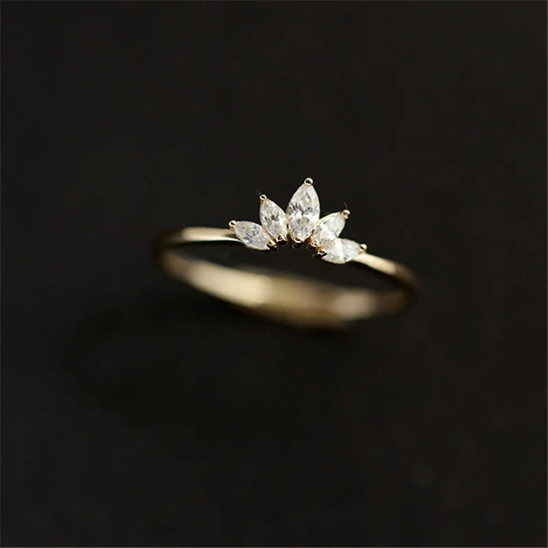 925 Sterling Silver Pavé Crystal Plating 14k Gold Simple Crown Ring Women Fashion Temperament Wedding Jewelry Accessories