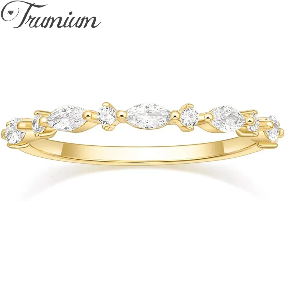 Trumium 14K Gold Plated Marquise Wedding Band for Women Stacking Ring Half Cubic Zirconia Eternity Engagement Ring Fine Jewelry