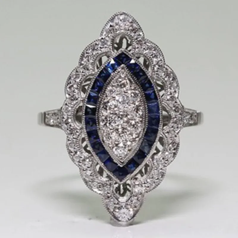 Milangirl Blue Rings for Women Wedding Engagement Ring Silver Color Rhinestone Zirconia Crystal Ring Bague Femme Luxury Jewelry