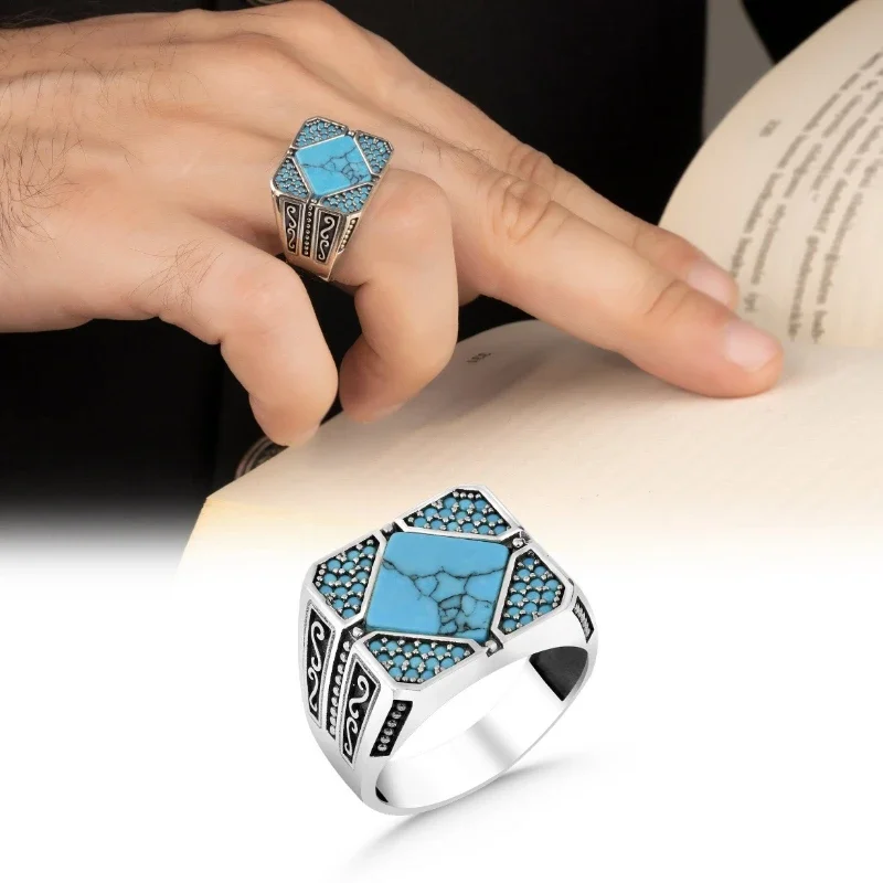 Personality Retro Punk European and American Turquoise Men's Ring  Read more