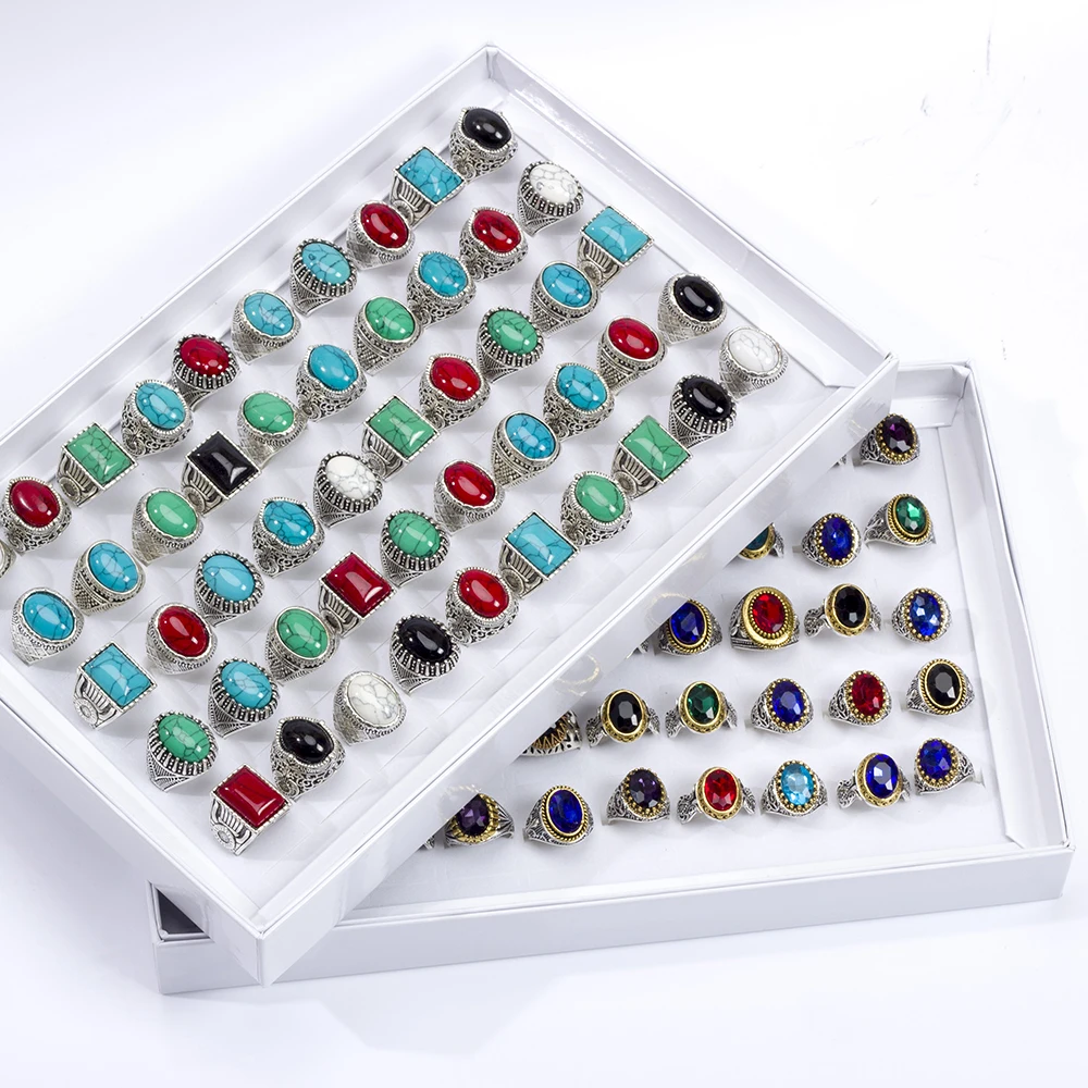 Bulk 20Pcs/Lot Mens Women's Vintage Metal Glass Turquoise Stone Rings For Party Gift Wholesale Jewelry