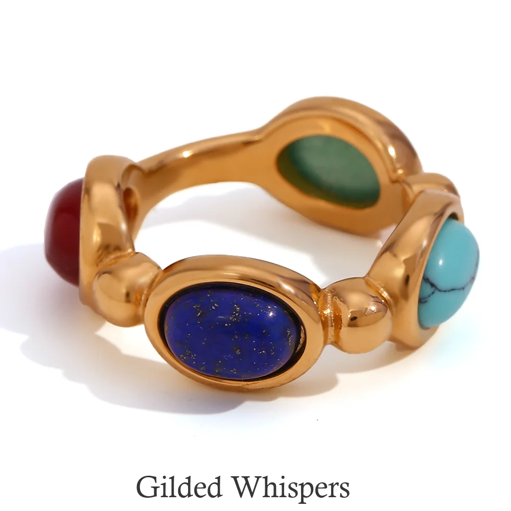Gilded Whispers | 4 Colors Natural Stone Turquoise Rings Stainless Steel Waterproof Ring Luxury For Ladies Charm Jewelry