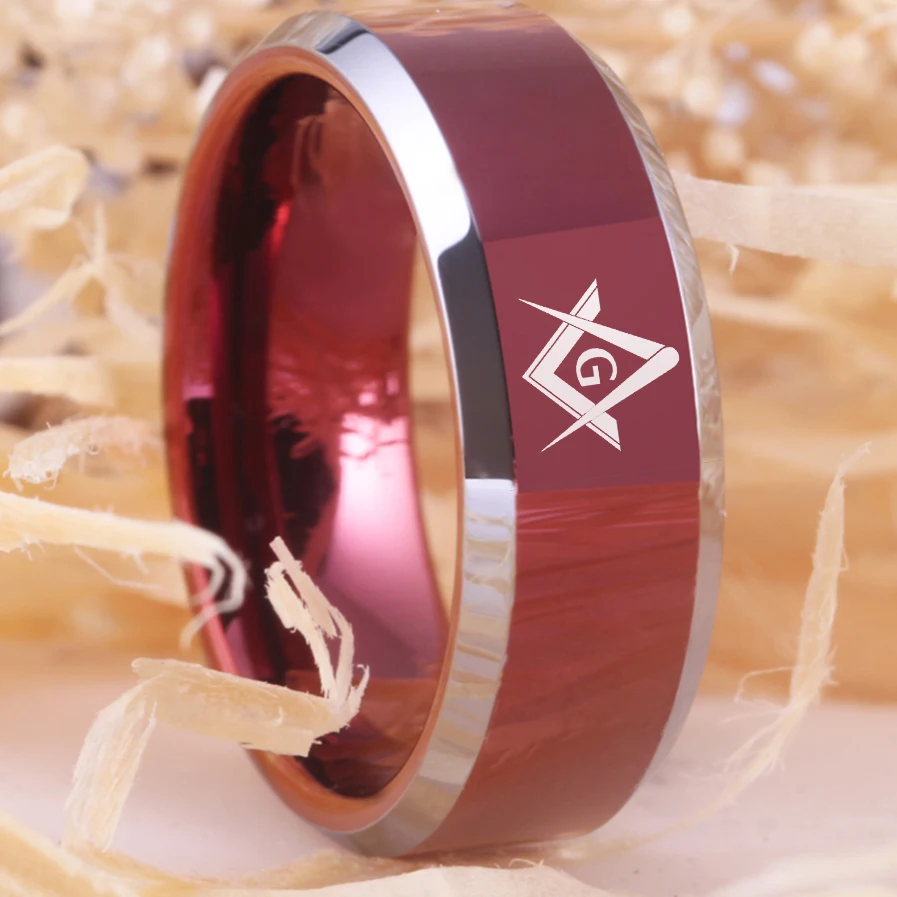 Masonic Ring Red Color Tungsten Freemason Ring SQUARE AND COMPASSES Wedding Engagement Ring Anniversary Gift Ring