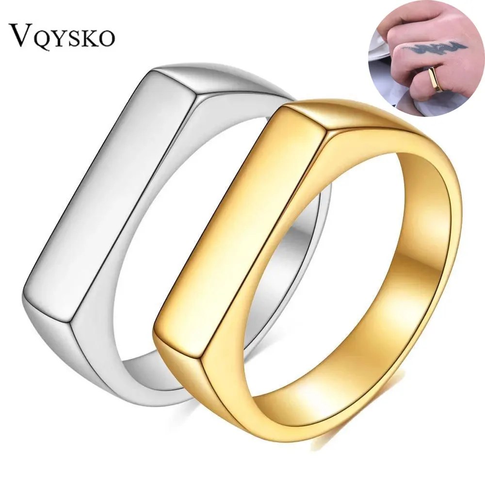 Vintag Steel Ring Square Flat Top 316L Titanium Steel Blank Plain Men Ring Personality Jewelry Smooth Surface for Friend Gift