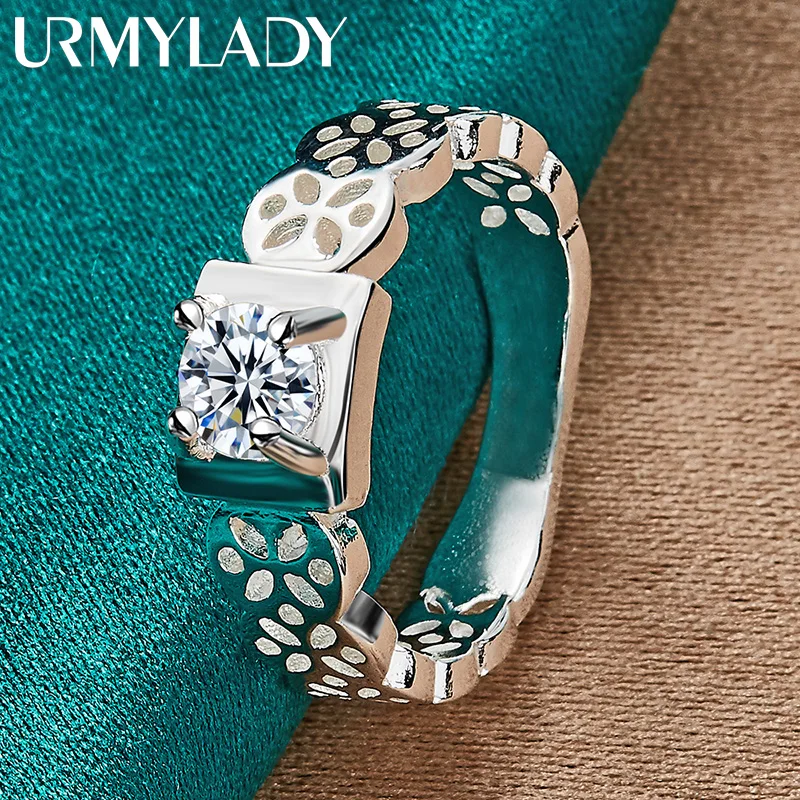 URMYLADY 925 Sterling Silver Square Zircon Hollow 6-10# Ring For Women Wedding Engagement Fashion Charm Jewelry