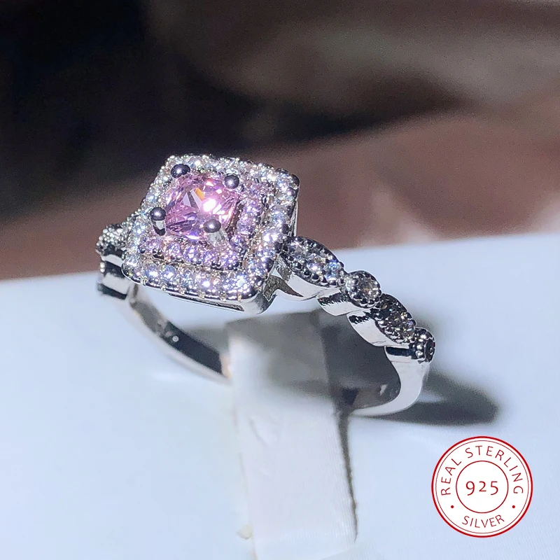 New Square Big Pink AAA Cubic Zircon Rings For Women 925 Silver Trendy Party Engagement Wedding Jewelry Geometric Zircon Ring  Read more