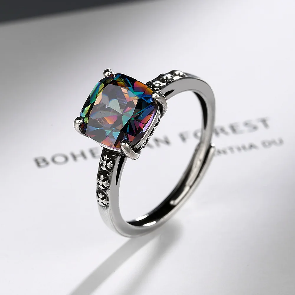 925 Sterling Silver Square Crystal Adjustable Rings For Women Wedding Luxury Fine jewelry GaaBou