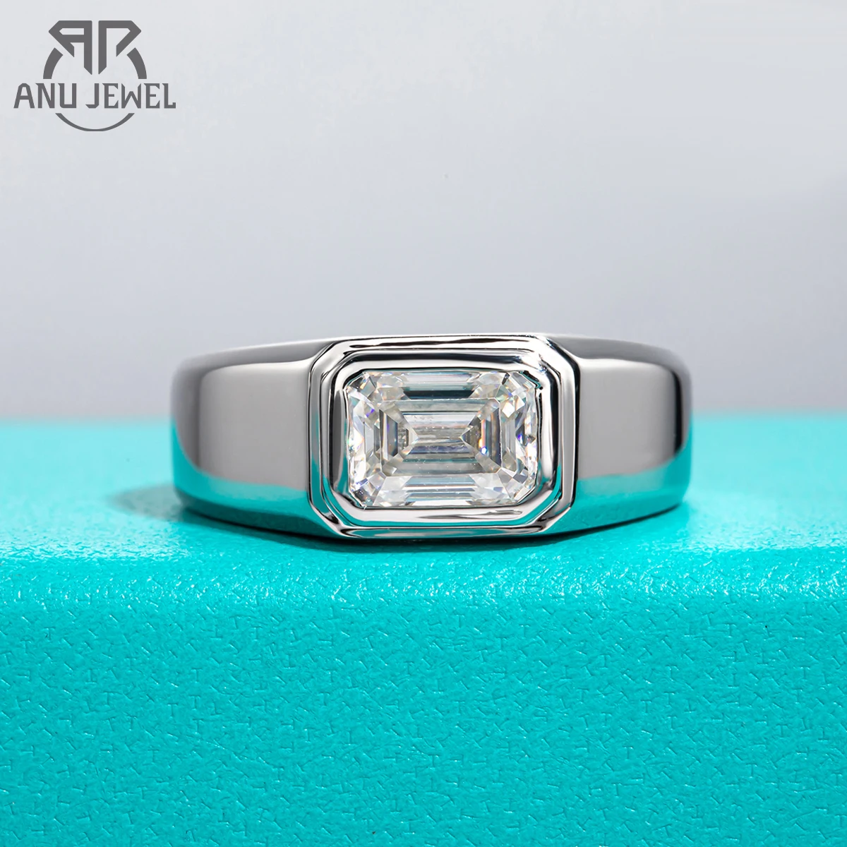 AnuJewel 2ct D Color Emerald Moissanite Men Ring 925 Sterling Silver 18K Gold Plated Engagement Rings For Man Jewelry Wholesale  Read more