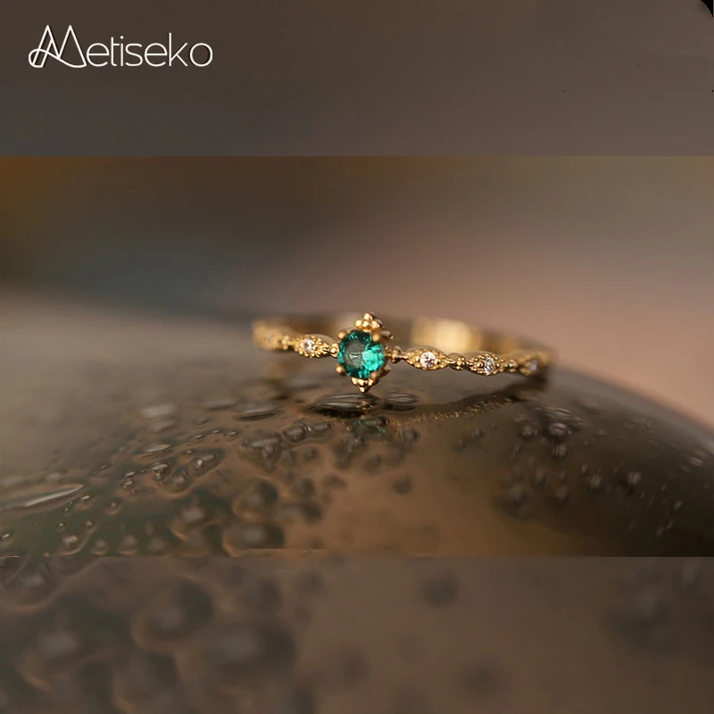 Metiseko Real S925 Sterling Silver Inlaid Emerald Color Cubic Zirconia Ring Fashion Light Luxury Waterproof for Women Party  Read more