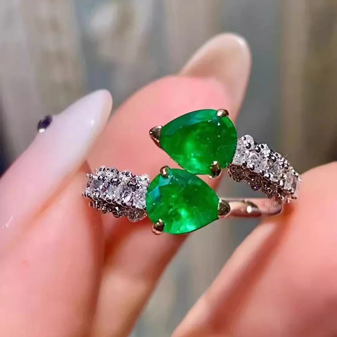 Metiseko Real S925 Sterling Silver Inlaid Emerald Color Cubic Zirconia Ring Fashion Light Luxury Waterproof for Women Party