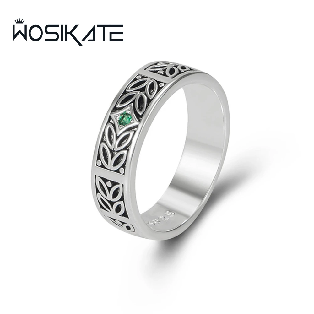 WOSIKATE Vintage Emerald Thai Silver Ring For Men Fashion 925 Sterling Silver Jewellery Finger Ring Accessories