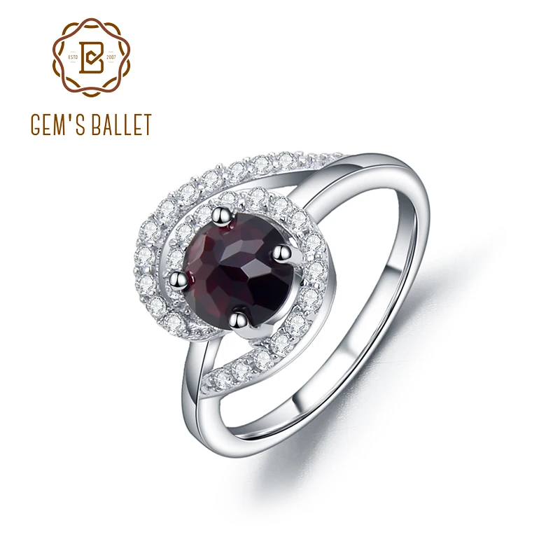 GEM'S BALLET 925 Sterling Silver Ring For Women Vintage Aet Deco Rings Natural Black Garnet Emerald Birthstone Fine Jewelry