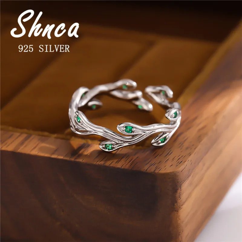 Hot Sale 925 Sterling Silver Tree Branch Emerald Crystal Open Rings For Women Female Adjustable LR324