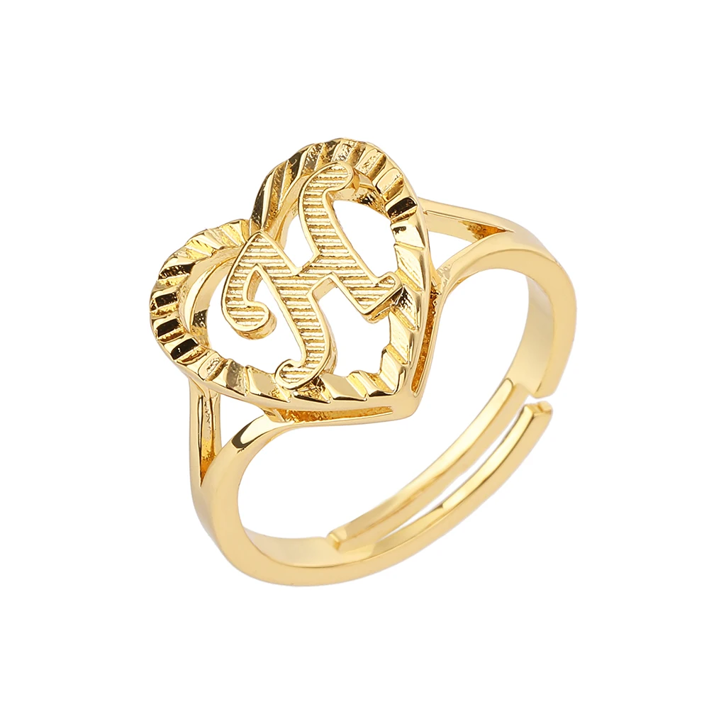 New Adjustable Letter Ring Heart Open Gold Color Fashion Simplicity Copper Rings For Women Elegant Jewels Party Girlfriend Gifts