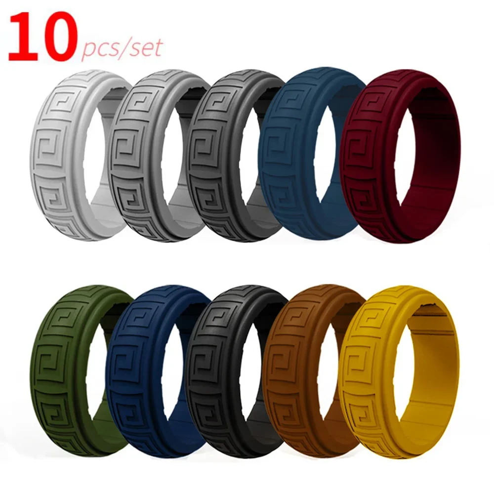 10pcs/set Loop Fret Greek pattern Silicone Rings Men loop Modelling Sports-Style Ring Silicone Jewelry For men