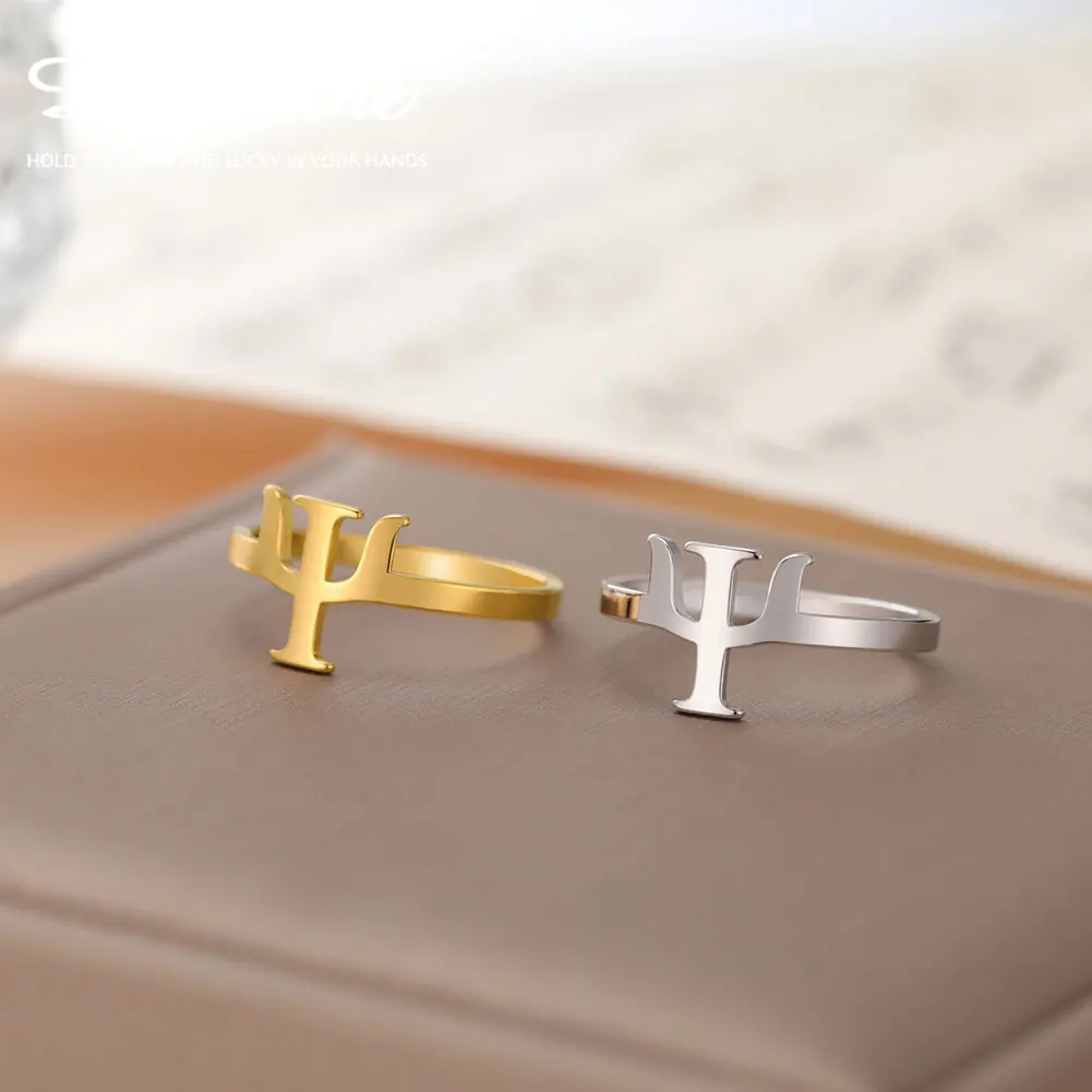 Greek letter symbol PSI open ring stainless steel men's and women's adjustable size psychological symbol amulet fashion jewelry