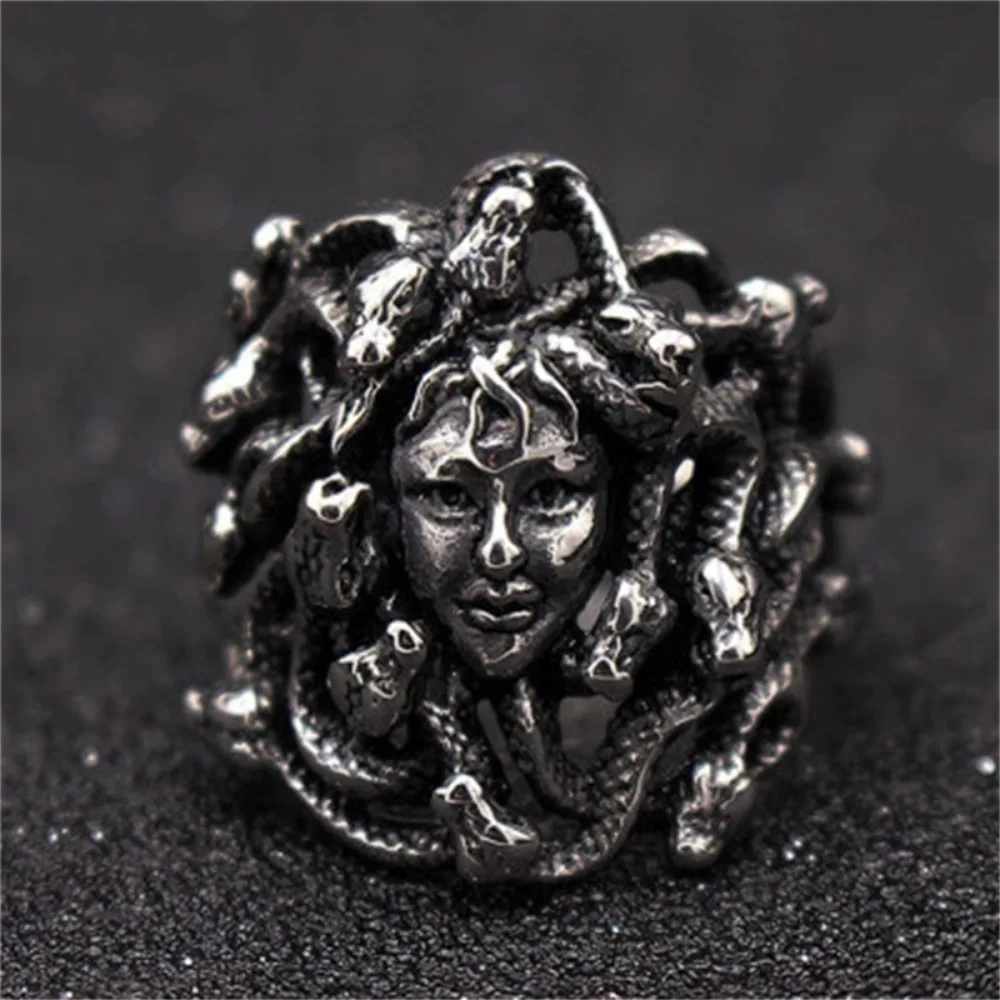 Simple, Unique and Versatile Ancient Greek Mythology Medusa Ring for Men and Women, Colorful Gothic Snake-haired Gorgon Ring