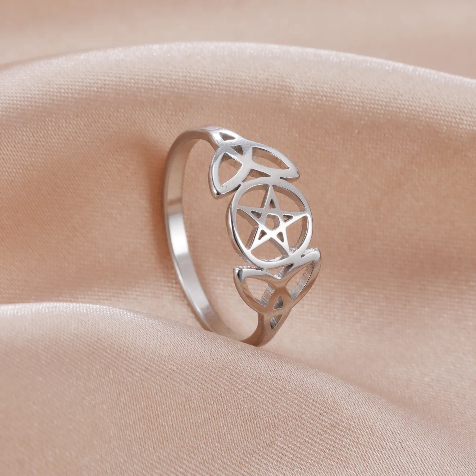 Skyrim Pentagram Love Irish Knot Rings Stainless Steel Supernatural Triquetra Wicca Amulet Religious Finger Ring for Women Gift