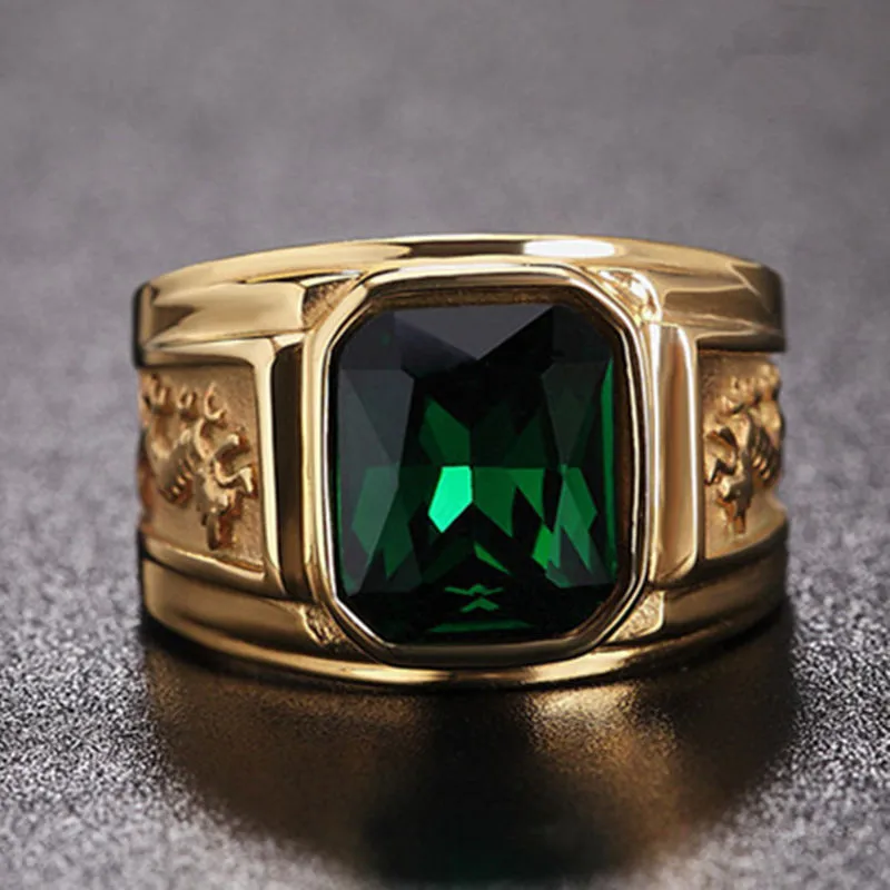 Fashion Men's Ring Square Facade Good Stone Inlaid Ring Side Flying Dragon Carving Domineering Men's Ring Party Jewelry Accessor