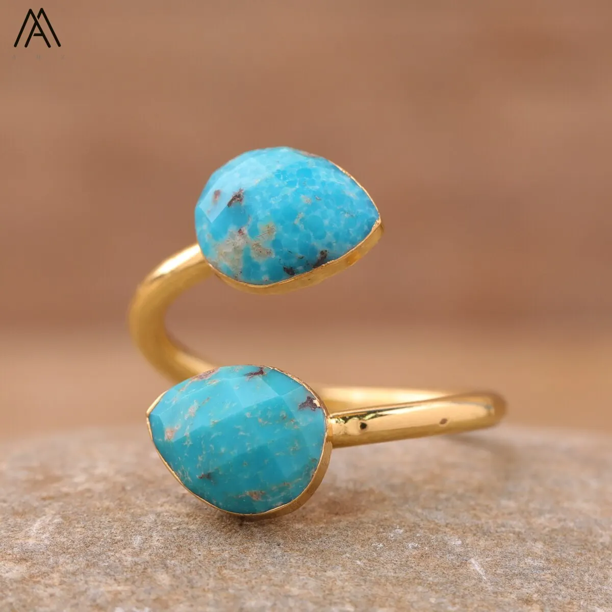 Teardrop Turquoise Finger Rings Women Elegant Simple Gemstone Beads Open Ring Fashion Party Anniversary Jewelry Gifts Bijoux