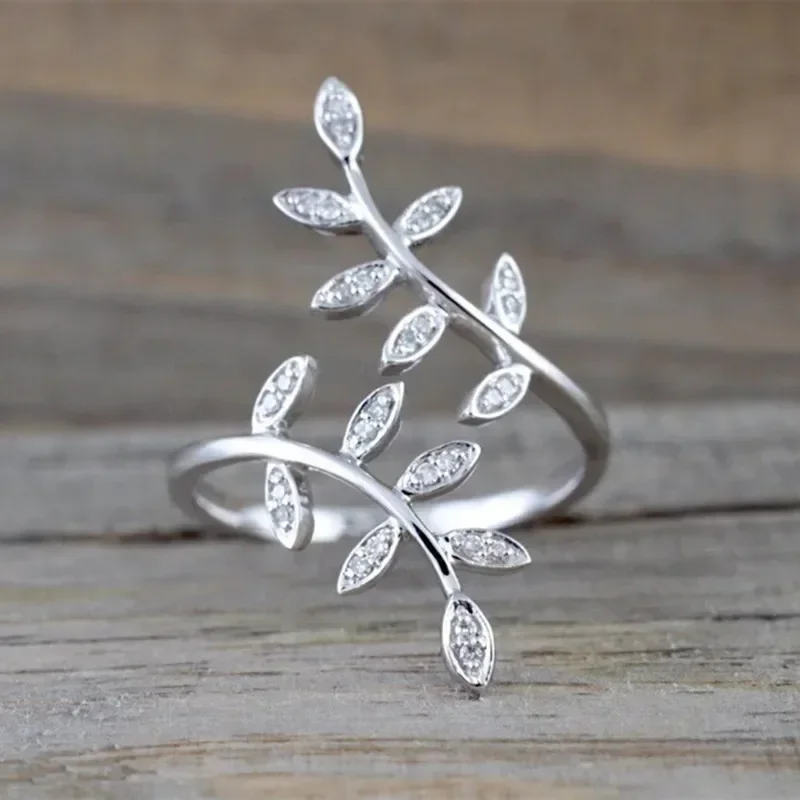 Huitan Fashion Leaf Opening Rings for Women Charming Delicate Engagement Accessories Modern Bright CZ Promise Wedding Jewelry