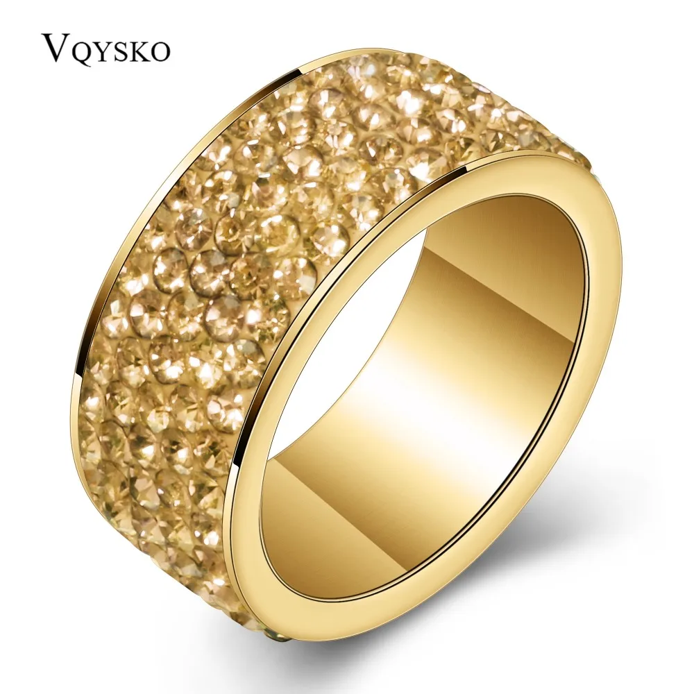 Gold Crystal Jewelry Free Shipping Wholesale Gold Color Stainless Steel Crystal Weddind Rings for women