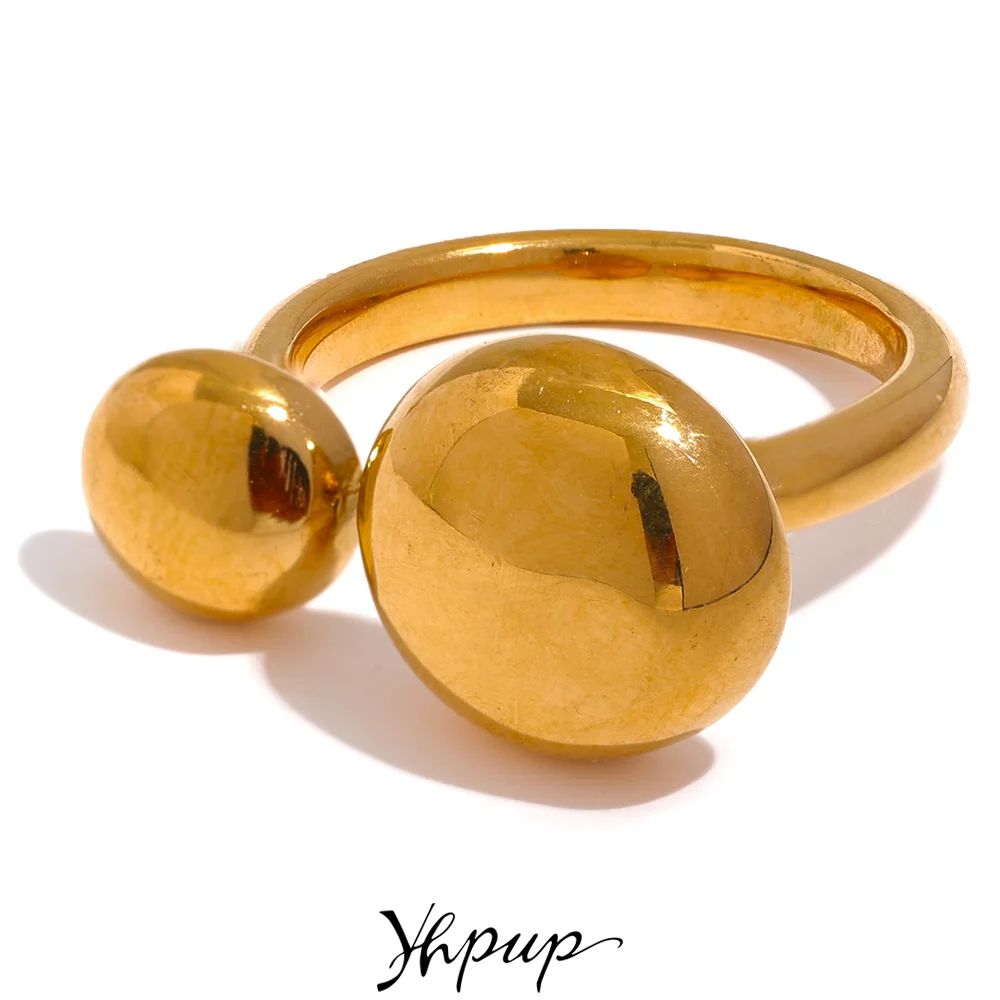 Yhpup Stainless Steel Minimalism Fashion Chic Ring for Women Real Gold Pvd Plated Waterproof Trendy Metal Smooth Simple Jewelry