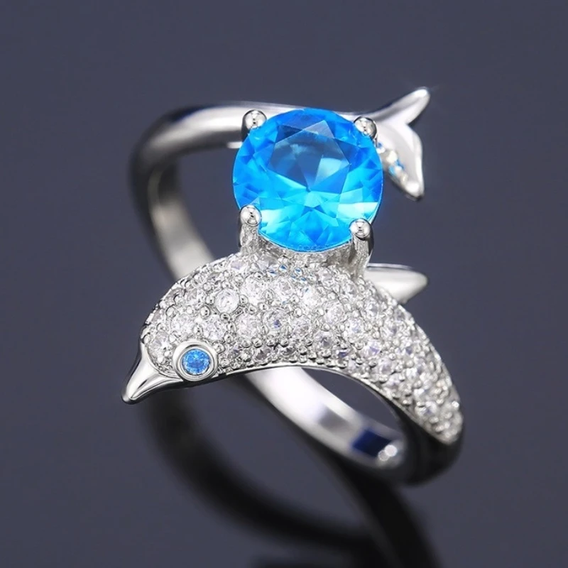 Exquisite Cute Dolphin Shape Rings for Women Silver Color with Blue/White Cubic Zirconia Party Jewelry Girl's Birthday Gifts