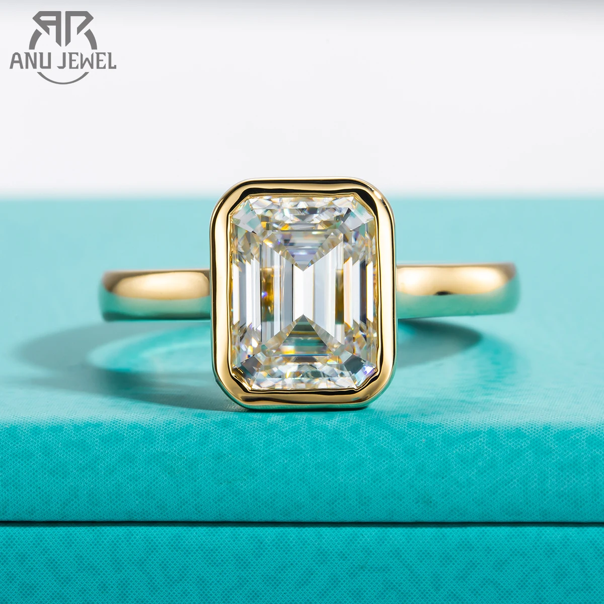 AnuJewel 3ct Emerald Cut D Color Moissanite Engagement Ring Yellow Color 925 Sterling Silver Rings For Women Jewelry Wholesale  Read more