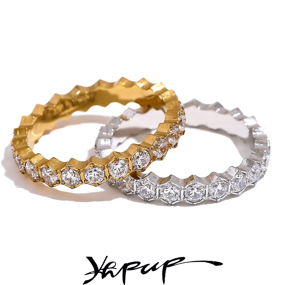 Yhpup Exquisite White Cubic Zirconia Bling Stainless Steel Classic Thin Chic Ring Luxury Engagement Wedding Fashion Jewelry Gift