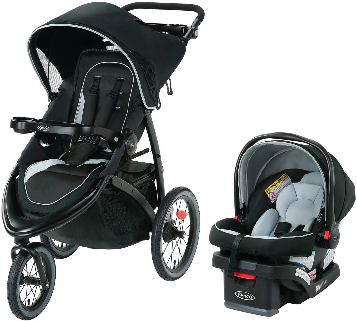 The Graco FitFold Jogger Stroller folds down to 70% of its original size, making it Graco's most compact folded jogging stroller. This travel system includes the SnugRide SnugLock 35 LX Infant Car Seat, for rear-facing infants 4-35 lb and up to 32...
