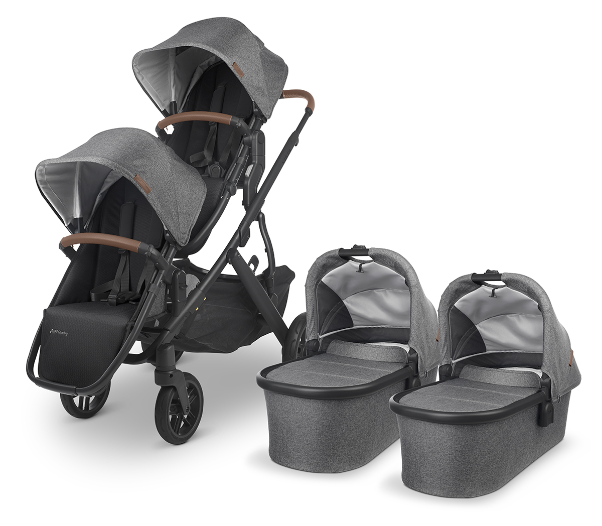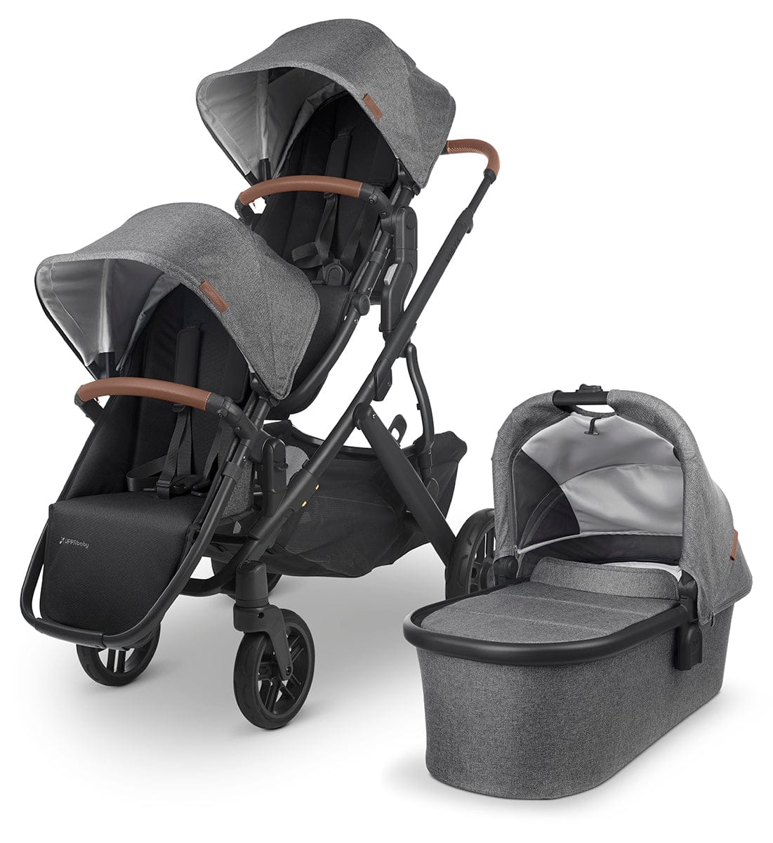 UPPAbaby Vista V2 Single-to-Double Stroller - Greyson (Charcoal Melange/Carbon/Saddle Leather)