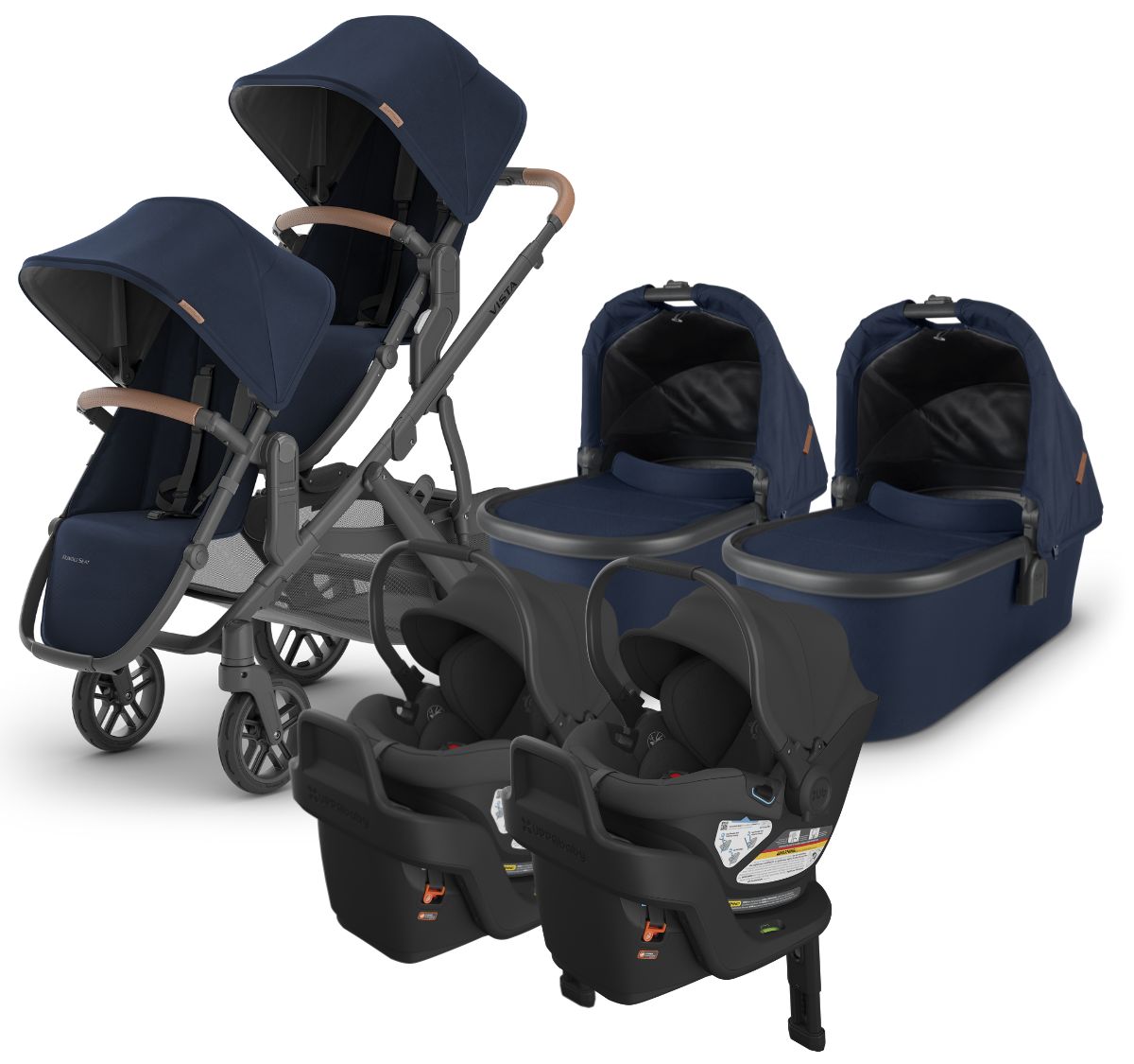 UPPAbaby VISTA V2 Double Stroller + Aria Travel System Bundle with Rumble Seat V2+ - Greyson