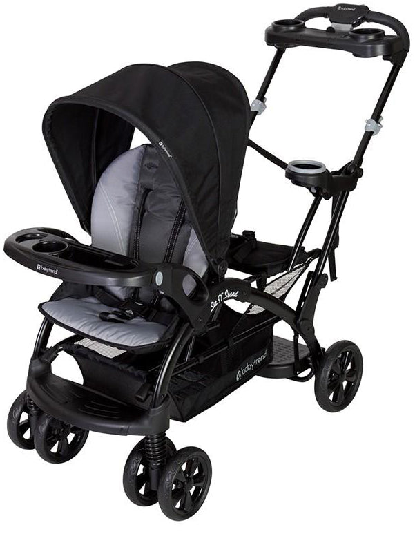 This Sit N' Stand Ultra Stroller has all of the great features of the Original Sit N' Stand, but with the versatility of accepting infant car seats in both the front and rear seating positions. Parents can stay hydrated on the go with dual cup...