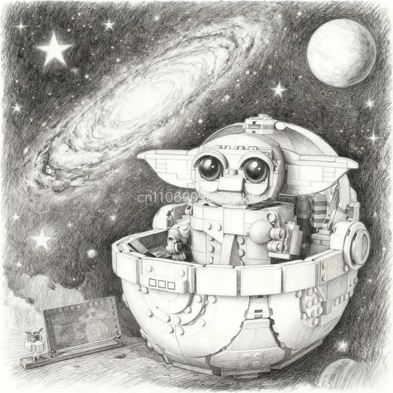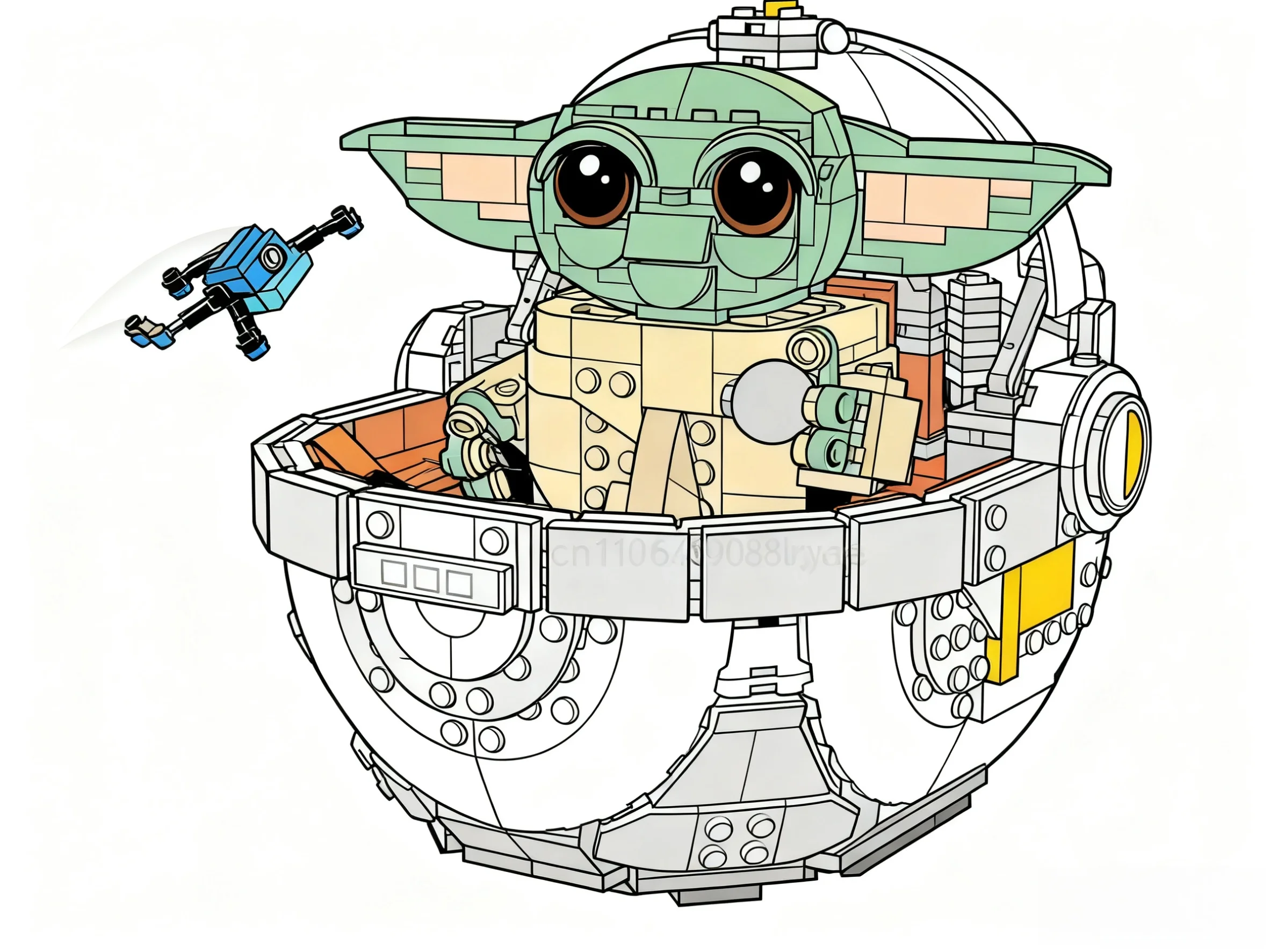 2025 new 1048-piece cartoon series Grogu stroller with hovering model building blocks ancient assembly toys children's gifts  Read more