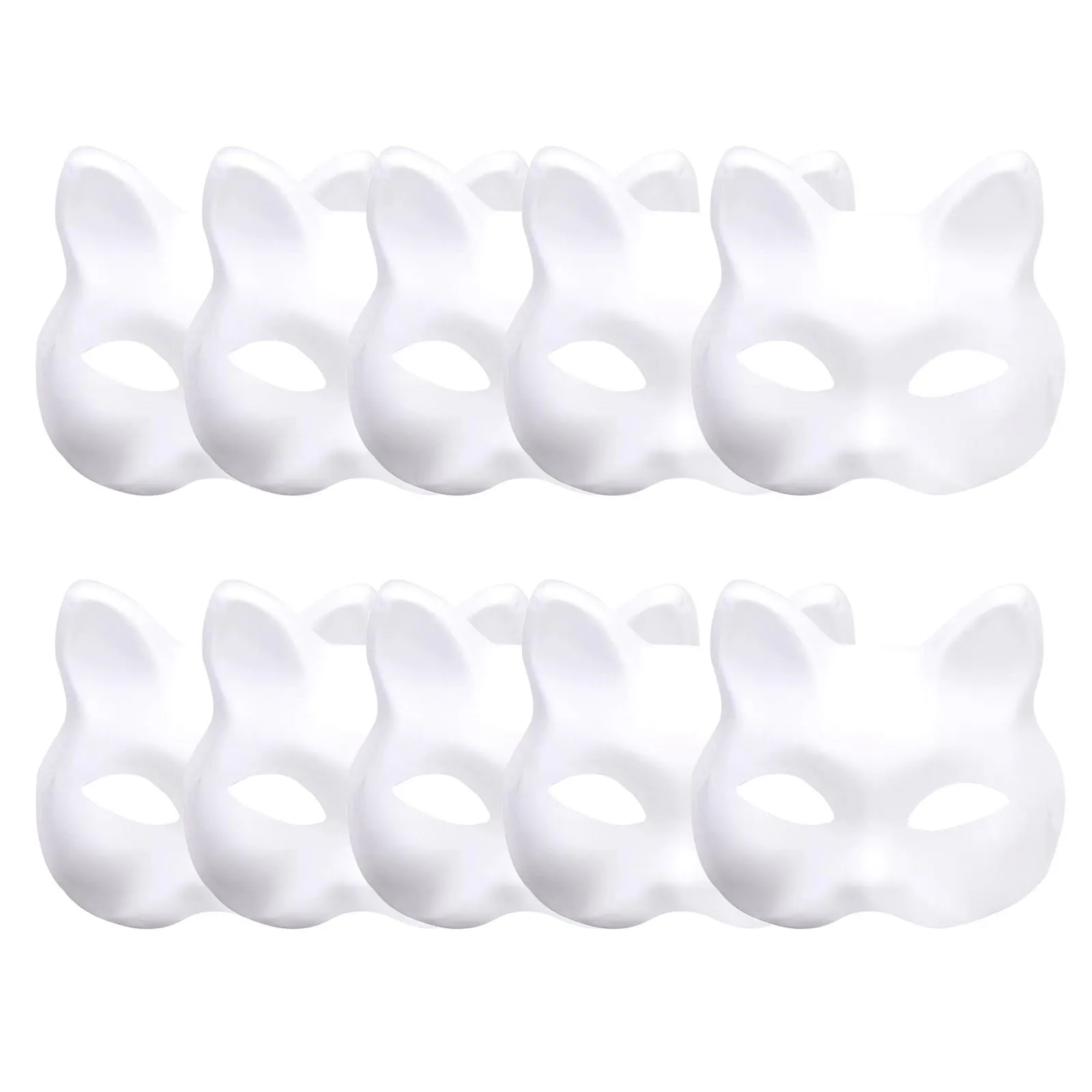 5/10pcs Plastic Blank White Mask Halloween Cosplay Cat Fox DIY Paintable Half Face Mask Animal Costume Party Decorate Craft Prop