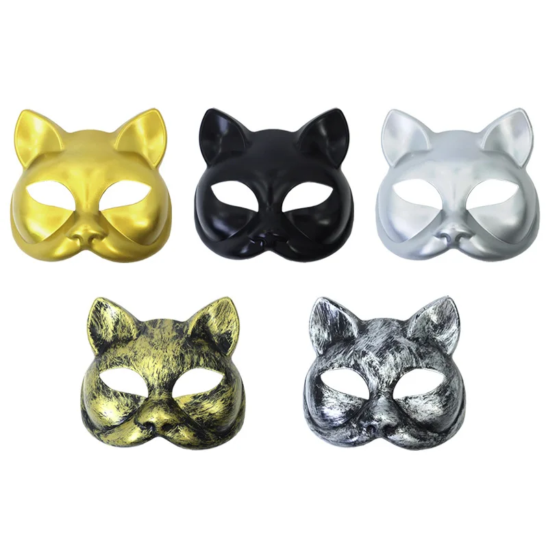 Halloween Cat Face Mask Made Plastic Vintage Light Panel Half Face Mask Venice Party Dance Party Costume Props  Read more