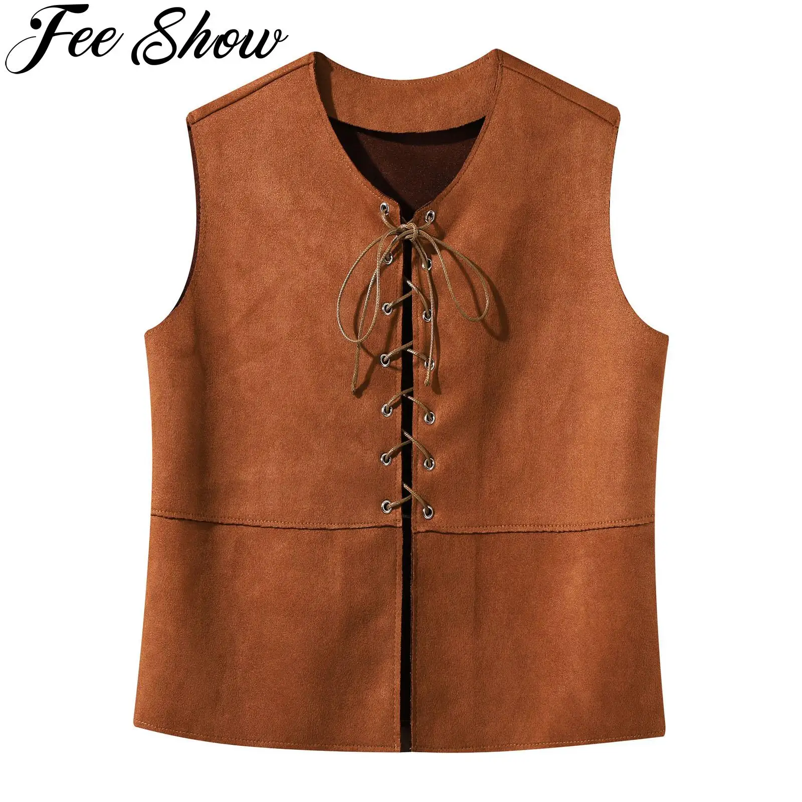 Kids Boys Medieval Renaissance Vest Pirate Costumes Halloween Party V Neck Sleeveless Lace-up Pirate Gothic Steampunk Waistcoat
