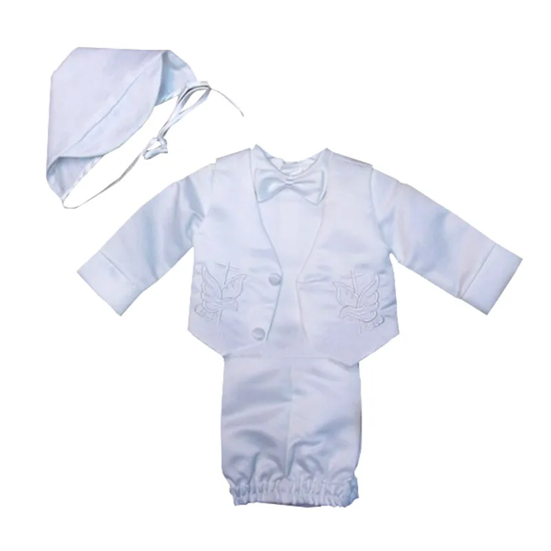 Baptism Clothes Babies Boys White Suits Baby Bow Tie Dove Christening Gown Costume 1st Birthday Gentleman Clothing for Baby Boy