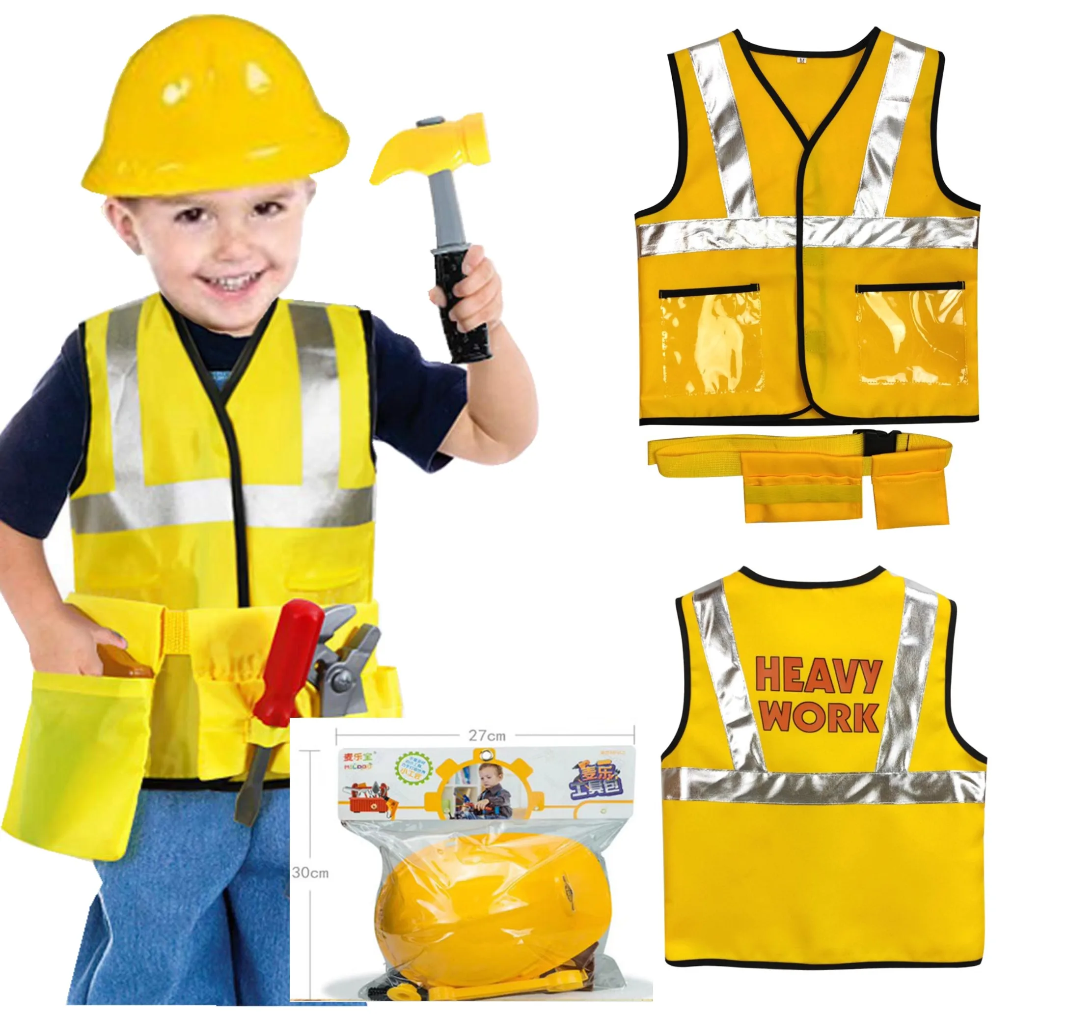 Boy firemen Party Game Gift Construction Worker Cosplay Costumes Hat Kit Role Play Toy Set Career Costumes Heavy Worker Dress Up  Read more