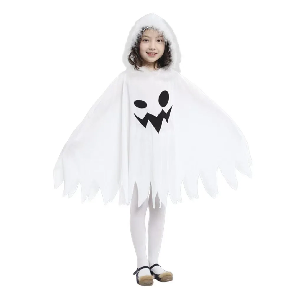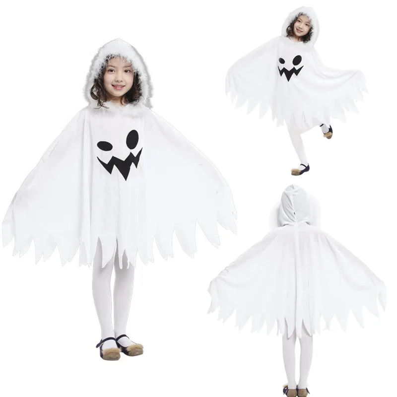 Halloween Kids Cosplay Costume White Elf Cloak Ghost Hooded Cloak Christmas Cloak Boy Girl Cape Clothes